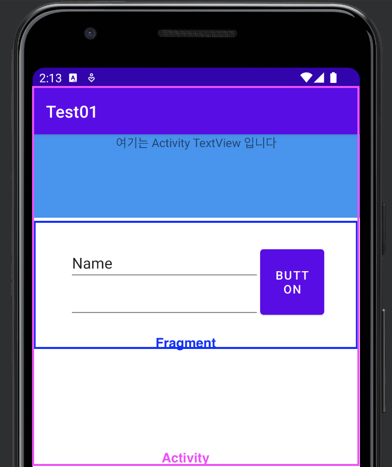 아래 이미지는 현재 테스트 하려는 Activity 와 Fragment 구조입니다.