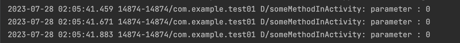 Log.d("someMethodInActivity", "parameter : $num")