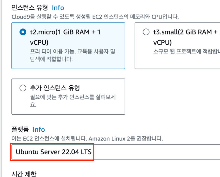 플랫폼은 Ubuntu 를 선택