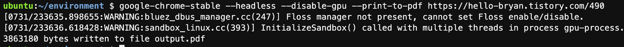 google-chrome-stable --headless --disable-gpu --print-to-pdf https://hello-bryan.tistory.com/490