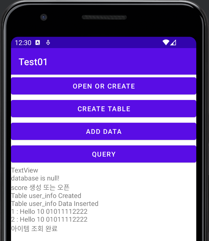 binding.dbTestOutputTextView.append("$databaseName 생성 또는 오픈")