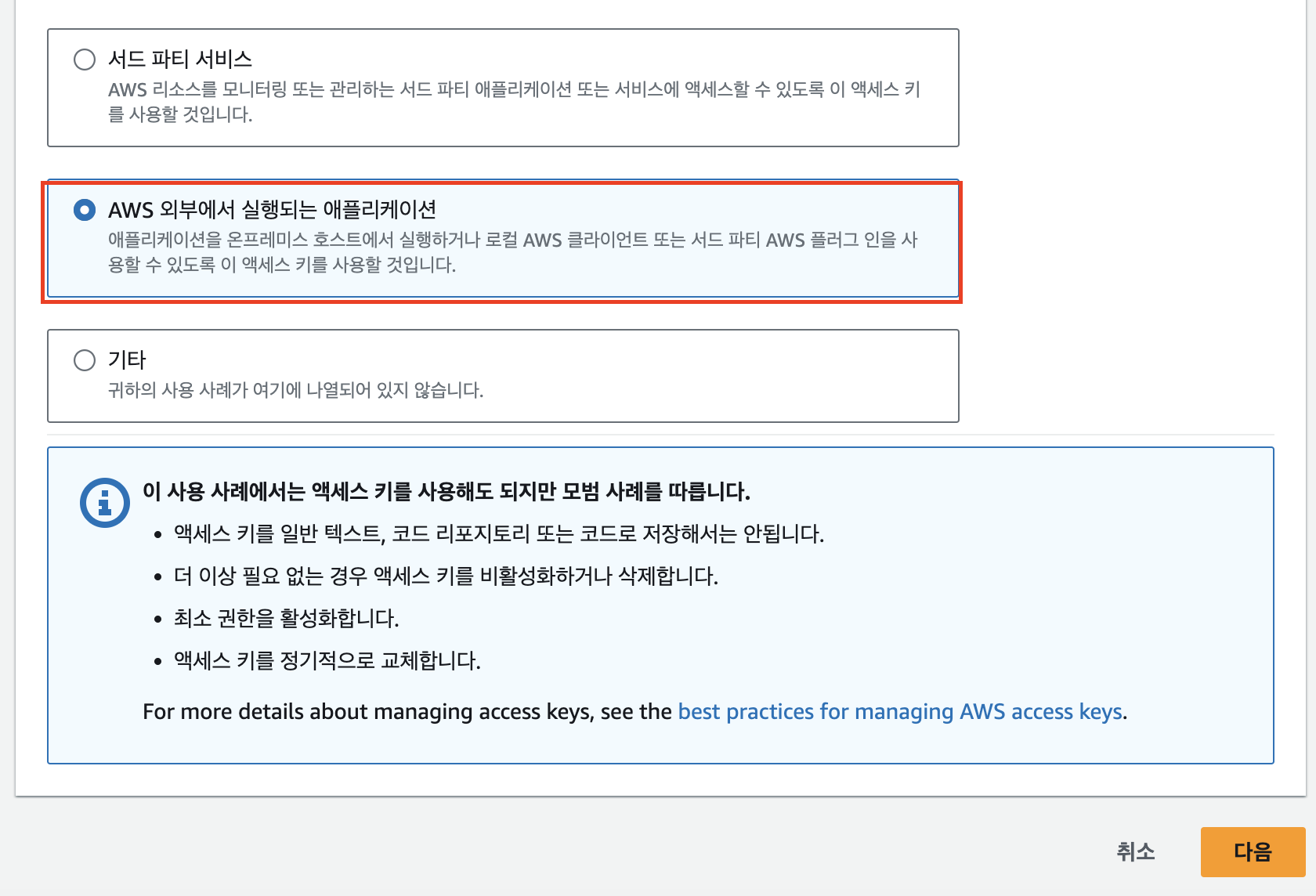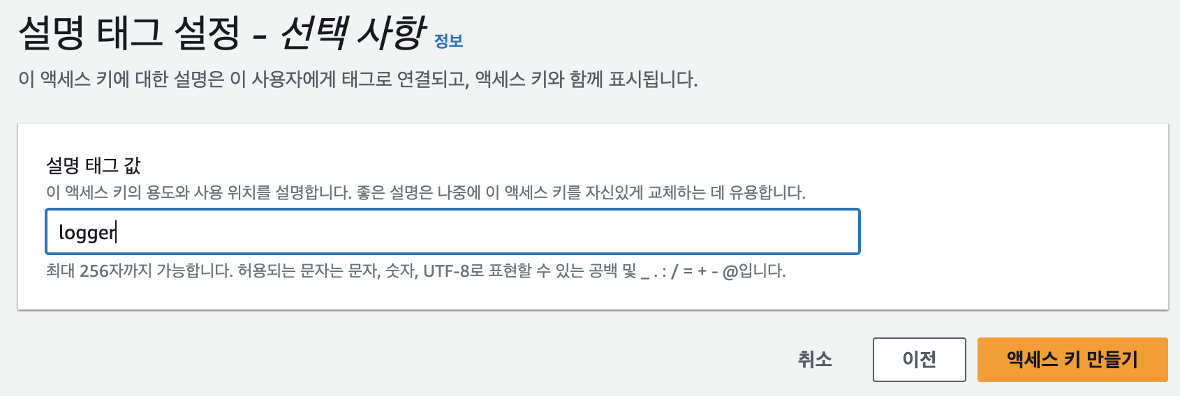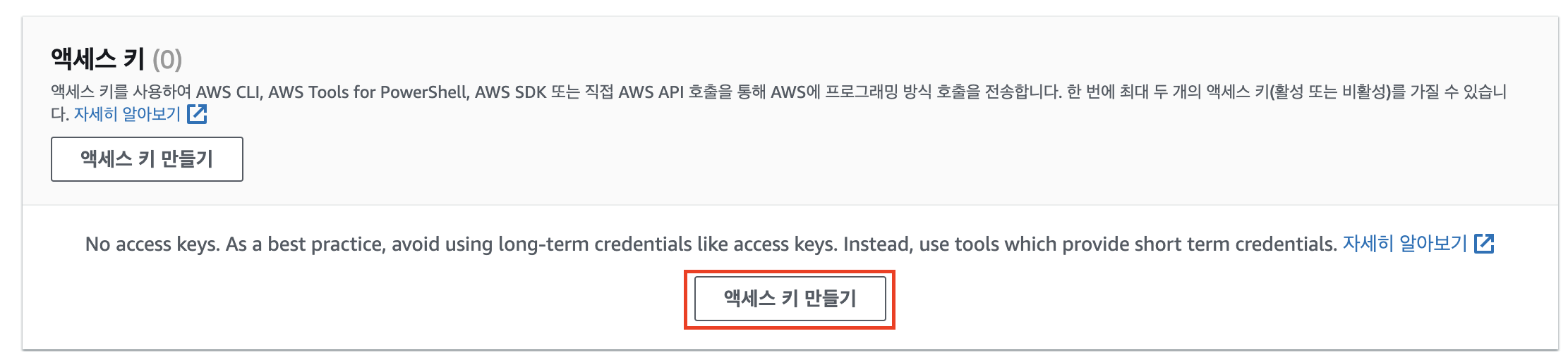 액세스 키 만들기 클릭