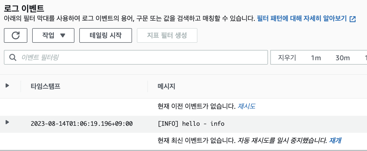 AWS 에 서비스를 올릴거라서 로깅은 CloudWatch 를 사용해보기로 했습니다.