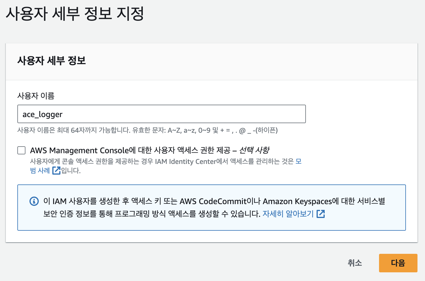우선 dev 환경인 로컬에서도 aws 의 서비스를 사용하기 위해서 aws 사용자를 추가해야합니다.