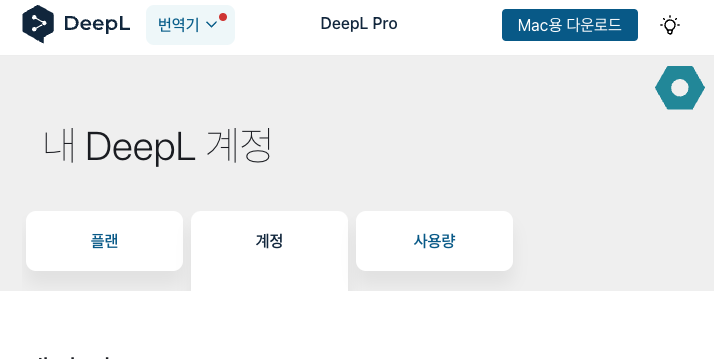 가입을 마치면, 내 DeepL 계정 에서 "계정" 탭에 맨 아래쪽에 api key 가 있습니다.