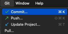 커밋이 완료되면, 변경 사항을 원격 저장소에 푸시해야 합니다. 이를 위해 VCS -> Git -> Push를 선택합니다. 푸시할 브랜치가 feature/some_name인지 확인한 후 Push를 클릭합니다.