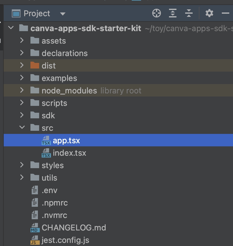 clone 받은 canva-apps-sdk-starter-kit 폴더를 webstorm 에서 열었습니다.