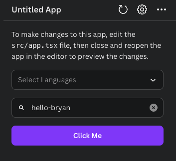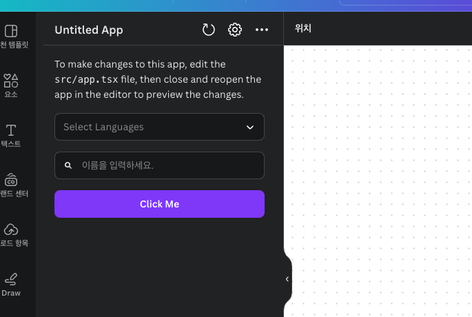 (참고) npm start 를 다시 하지 않고, 소스에서Command(window는 ctrl)+s 로 저장하고, 캔바 앱의 상단에 새로고침 아이콘을 눌러서 변경사항을 반영할 수 있습니다.
