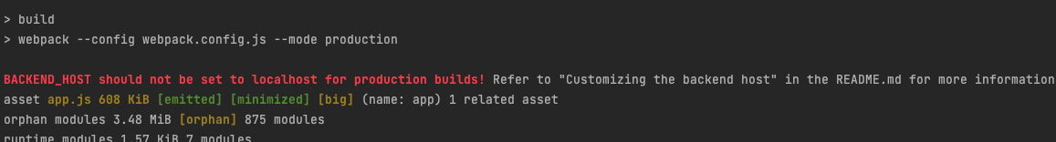 .env 에서 백엔드 URL 을 지정하지 않았다면, 다음과 같은 경고 메시지가 나옵니다.