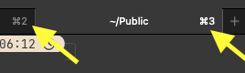 command + t 를 누르면 탭을 생성합니다. 탭에 있는 숫자는 command 키를 누르고 숫자 키를 누르면 해당 탭으로 이동합니다.