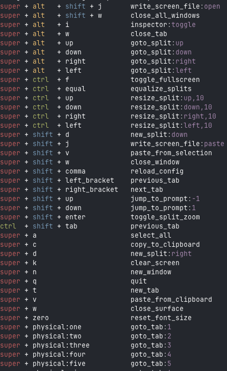 ghostty +list-keybinds