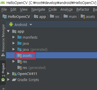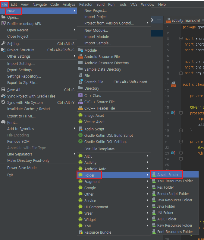 안드로이드 프로젝트를 생성하면 기본적으로 Assets Folder 가 없습니다.