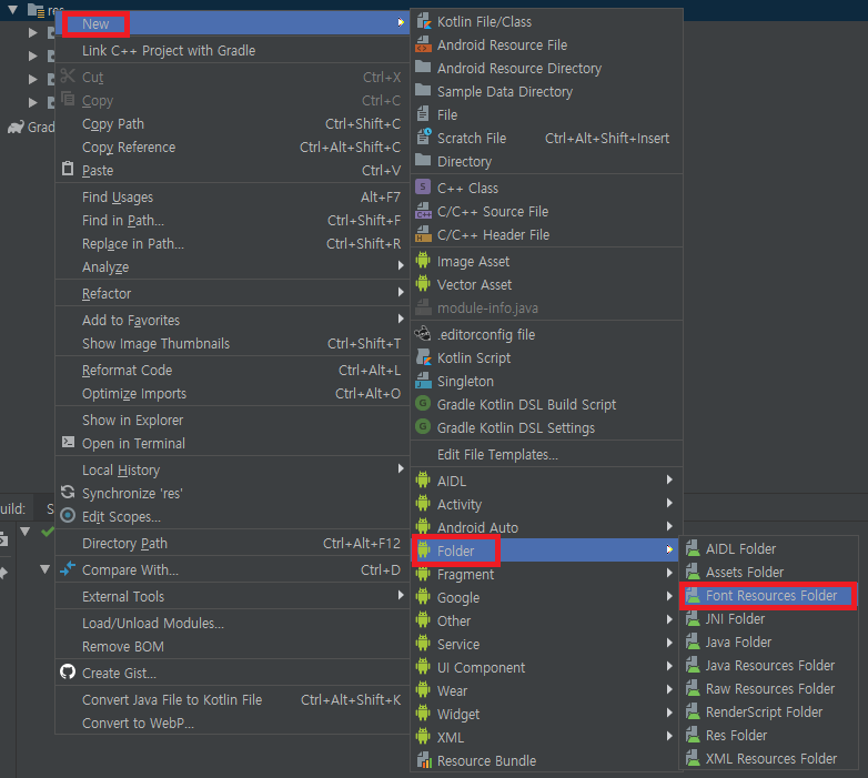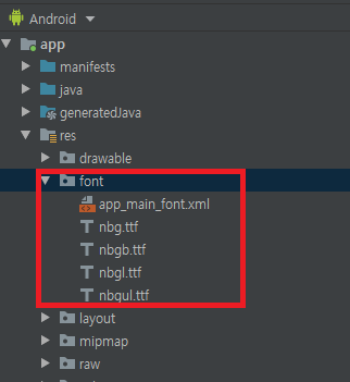 처음엔 안드로이드 프로젝트의 res 경로에 font 폴더가 없겠죠.