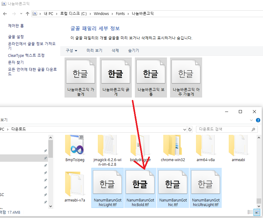 C:\Windows\C:\Windows\Fonts 에서 나눔바른고딕을 찾아주세요.