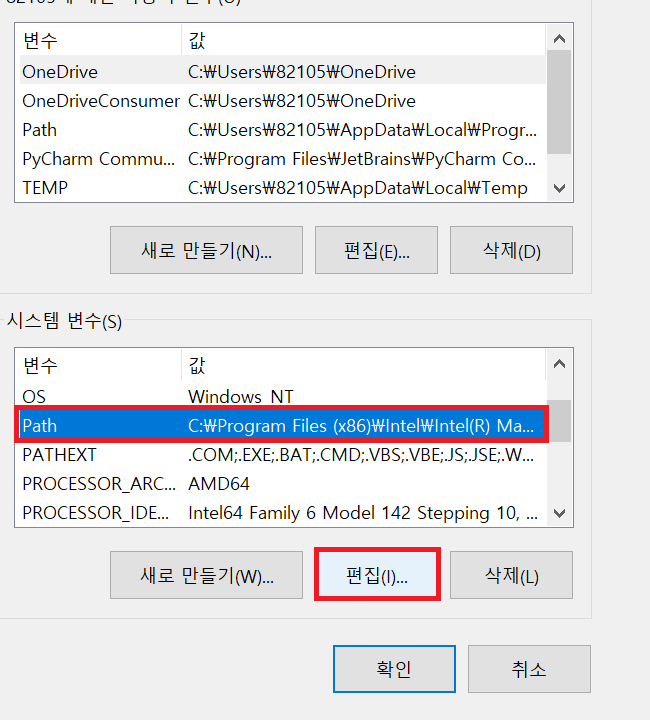 설치 시 경로를 기본으로 했다면 위와 같이 입력하시면 됩니다.