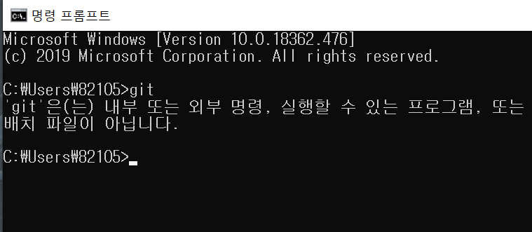 git 설치 전에 cmd가 열려 있었다면 닫고 다시 열어야 합니다.