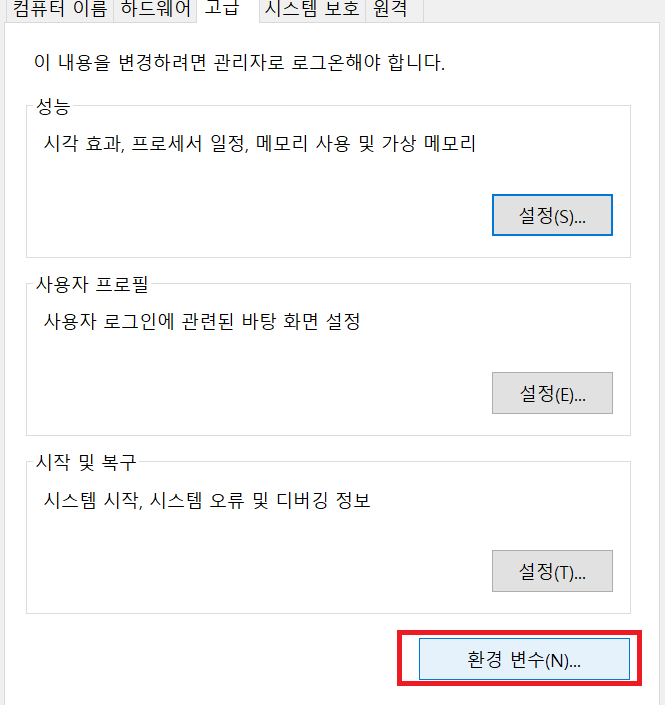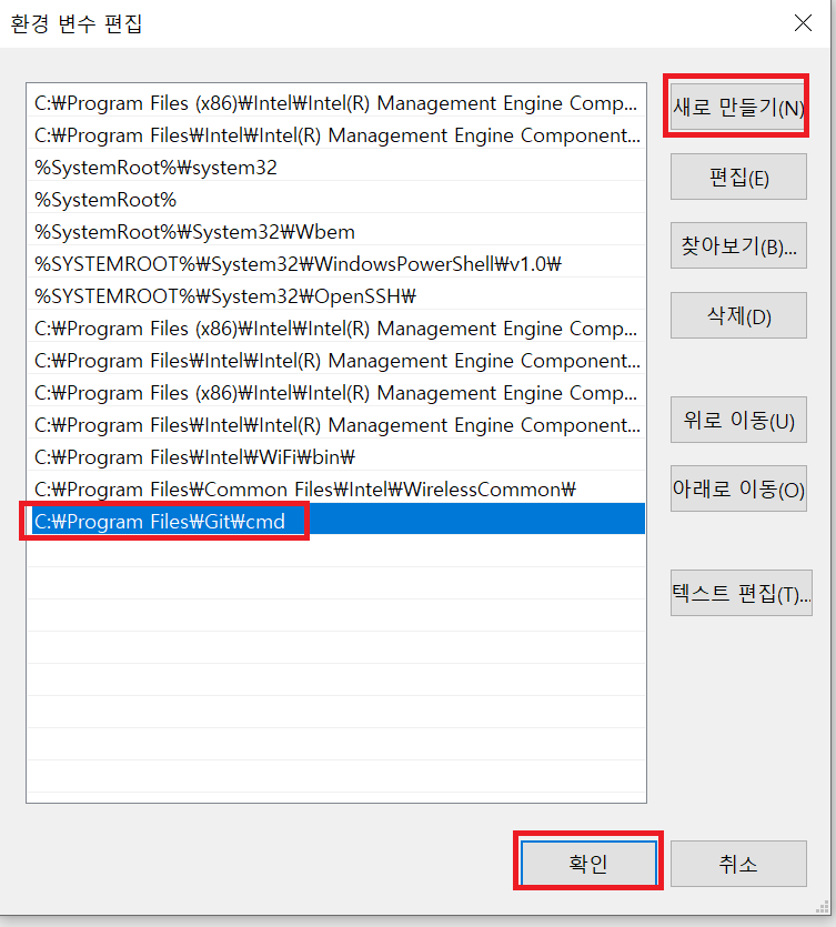 혹시나 저렇게 나오지 않는다면 "시스템환경변수" 에 git의 Path 를 추가해줘야합니다.