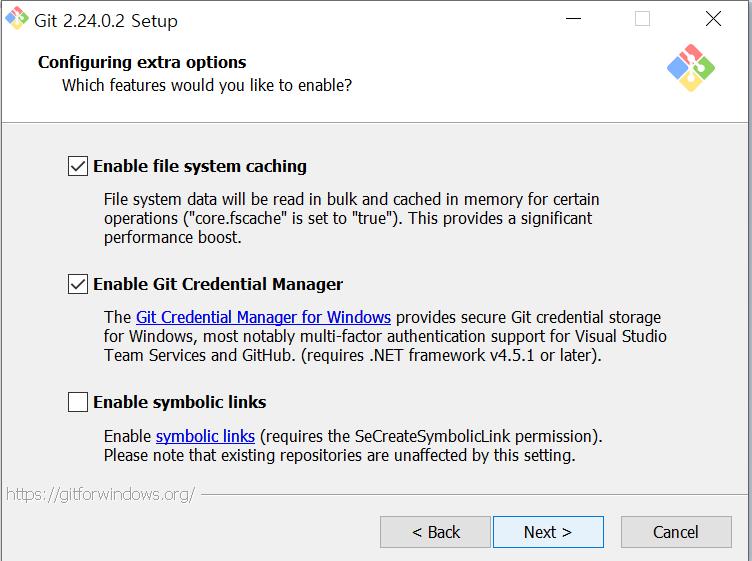 Enable symbolic links : symbolic links 활성화합니다.(기존 저장소는 영향을 받지 않습니다)