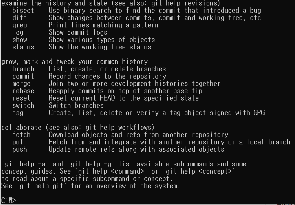 이제 다시 cmd를 열고 한번 더 git 명령을 쳐봅니다.