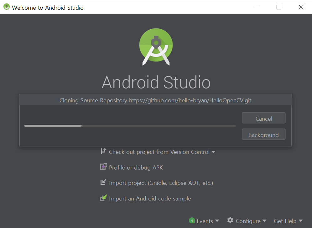 Git 에 올라가있는 프로젝트의 소스를 다운로드 받는 중입니다. (Check out)