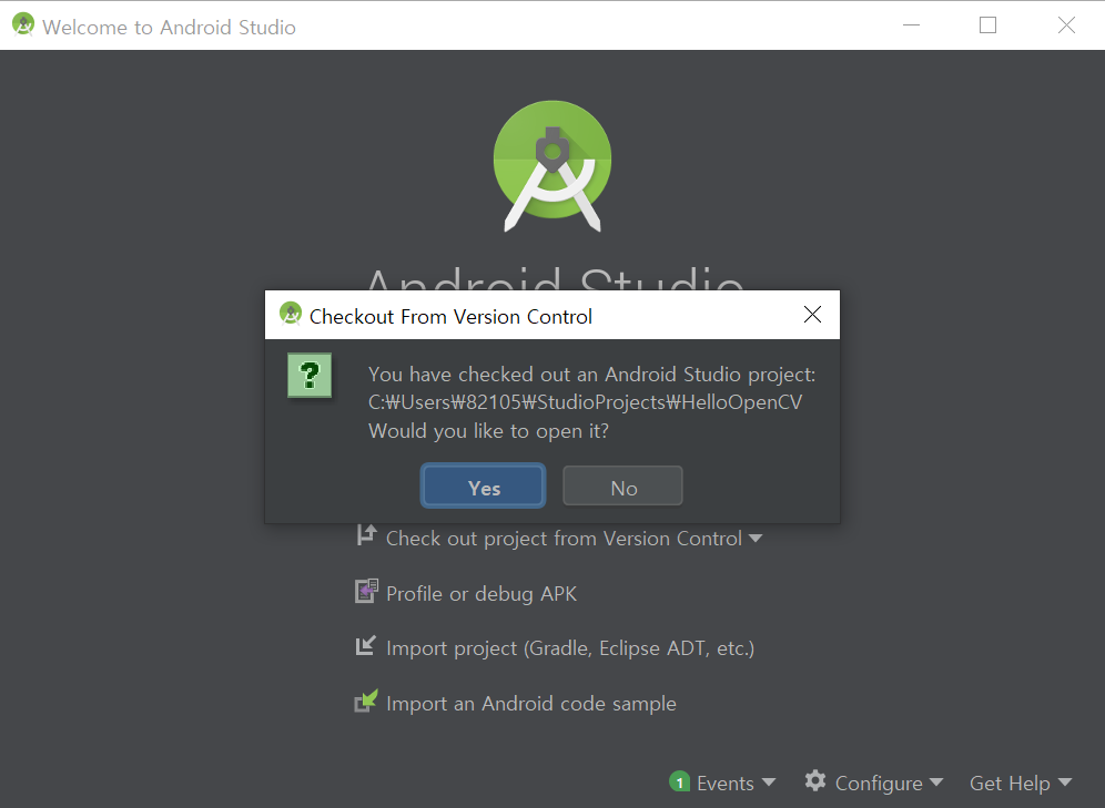 안드로이드 스튜디오를 실행해서