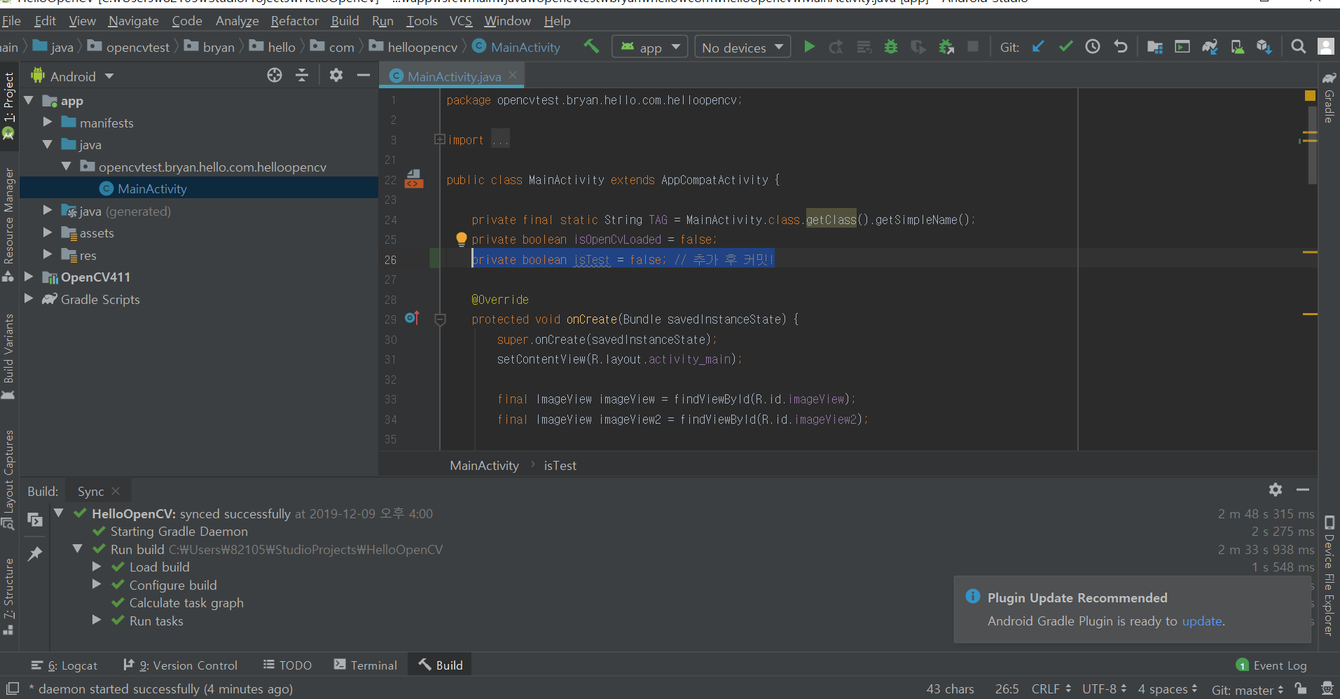 MainActivity.java 에 isTest 변수를 추가합니다.