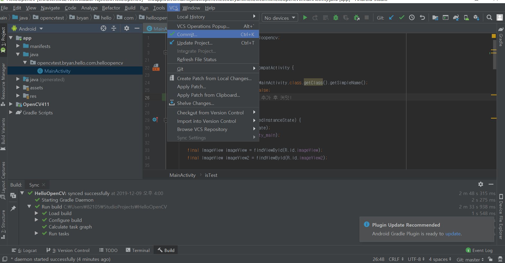 소스를 수정하고 Commit 을 해보겠습니다.