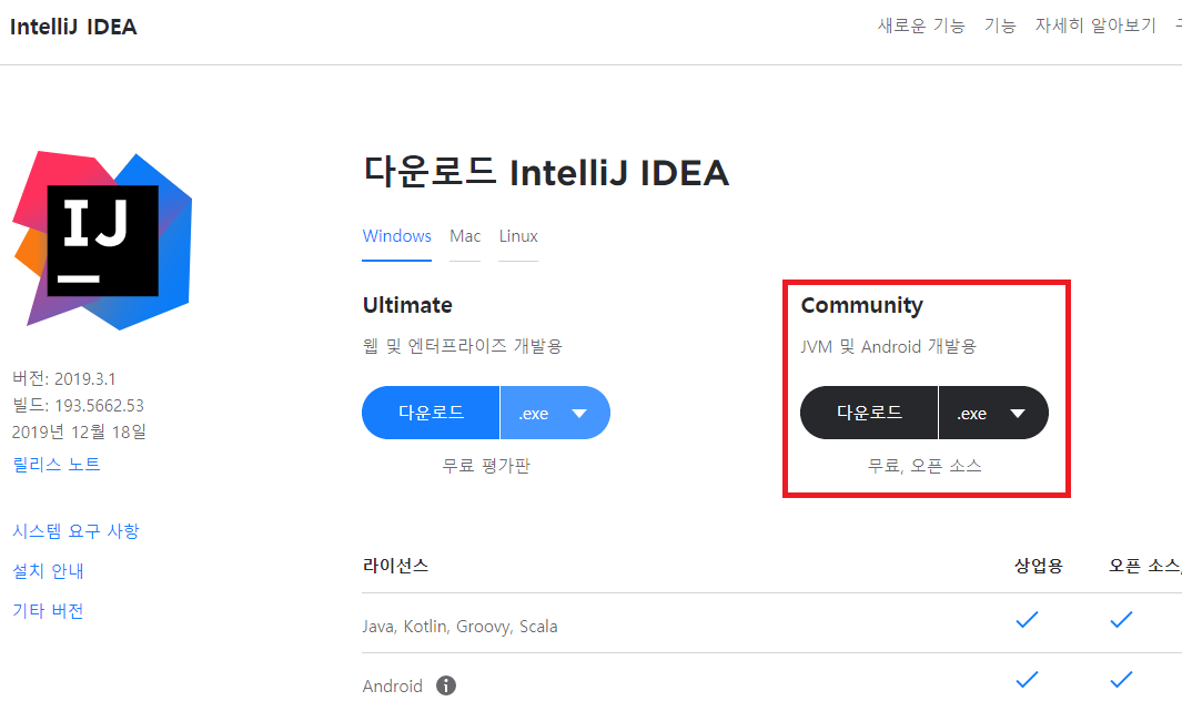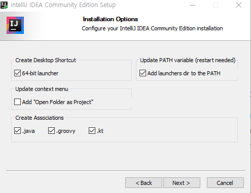 .java .groovy .kt 등의 확장자의 파일을 오픈할 기본 프로그램으로 설정합니다.