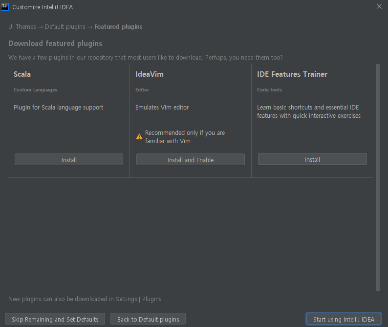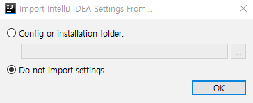 최초 실행이니까 Do not import settings 로 선택하고 OK.
