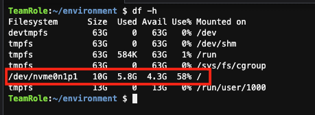 Cloud9 Amazon Linux 2 no space left on device 참고 : Cloud9 에서 Ubuntu 로 생성했다면, 아래 방법으로 해결되지 않습니다. 이 글은 Amazon Linux 2 로 생성했을 경우 space를 늘리는 방법입니다. root 경로에 resize.sh