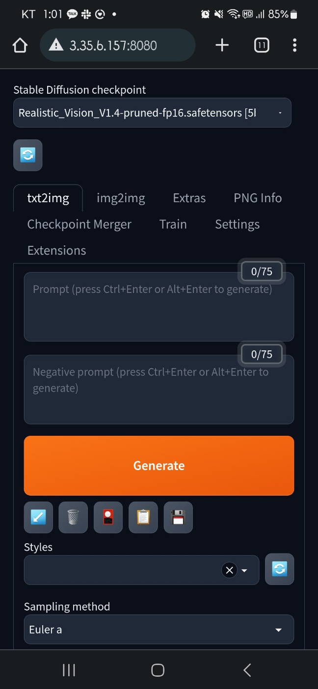 Instance Type 사양이 너무 작으면 webui 에 필요한 환경 설치 및 실행이 느릴수 있습니다.
